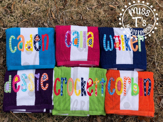 APPLIQUE CUSTOM NAME BEACH TOWELS