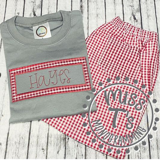GINGHAM KIDS MATCHING OUTFITS WITH CUSTOM EMBOIRDERY