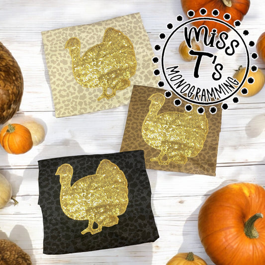 LEOPARD TEE WITH SEQUIN TURKEY APPLIQUE