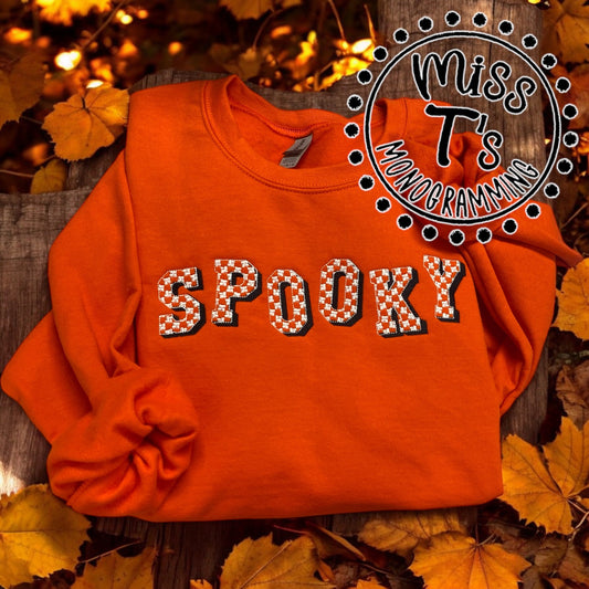CHECKERED SPOOKY EMBROIDERED HALLOWEEN SWEATSHIRT