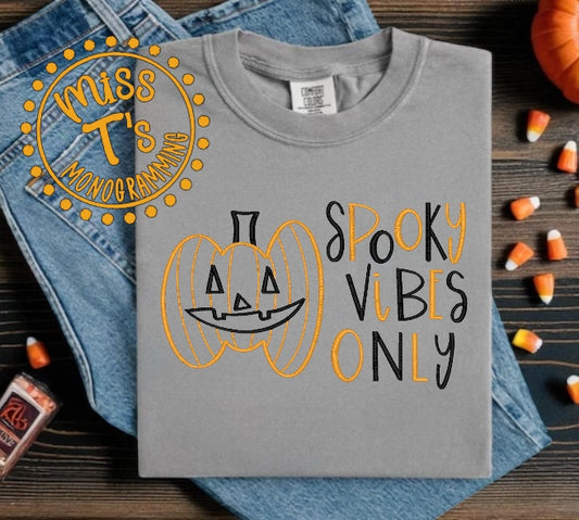 SPOOKY VIBES ONLY EMBROIDERED TSHIRT OR SWEATSHIRT