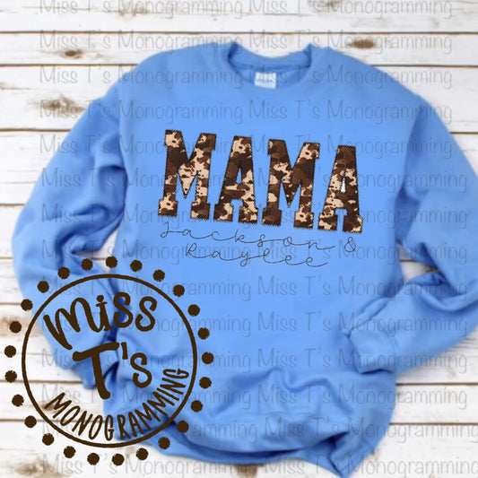 COW HIDE CUSTOM NAME APPLIQUE SWEATSHIRT WITH KIDS NAMES