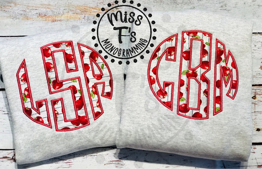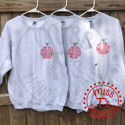 TEACHER / APPLE APPLIQUE CIRCLE MONOGRAM SWEATSHIRT