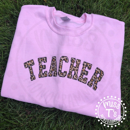 TEACHER LEOPARD APPLIQUE SWEATSHIRT