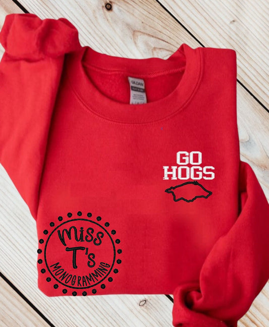 ARKANSAS COWHIDE APPLIQUE AND EMBROIDERED TSHIRT OR SWEATSHIRT